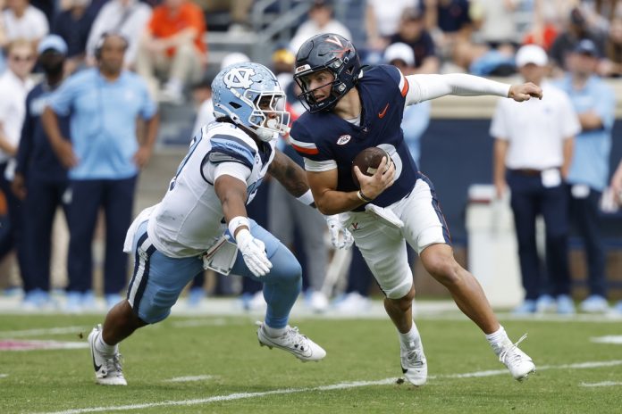 Virginia got on the scoreboard first quarter with a 30-yard field goal from Will Bettridge on the opening drive, but didn’t reach the end zone until early in the fourth quarter. By then, North Carolina was well in front, taking a 38-6 lead when Jahvaree Ritzie intercepted Colandrea and returned it 84 yards for a touchdown.