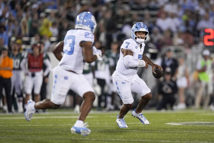 North Carolina caught a break when Charlotte matched into Tar Heels territory on the first possession of the second half. But Harrell’s fourth-down throw was dropped by E. Jai Mason in the end zone — a situation that was so stunning that fireworks were set off prematurely to celebrate a would-be Charlotte touchdown.