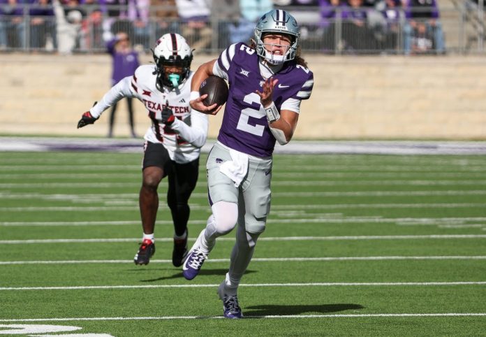 Wildcats quarterback Avery Johnson has 16 touchdowns and four interceptions but is coming off a two-interception game in K-State’s 43-20 loss to Texas Tech on Nov. 1. With the Wildcats in comeback mode early, Johnson had a season-high 15 carries for 88 yards and two touchdowns.
