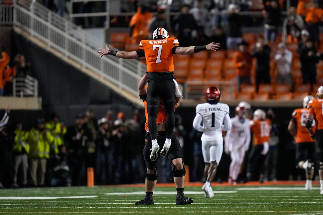 Bowman, who completed 17 of 34 passes with two touchdowns and an interception, found Brennan Presley with a 15-yard scoring strike just over three minutes into the third period. Ollie Gordon made it 24-7 less than three minutes later with a 9-yard touchdown run and Presley added a 1-yard scoring jaunt at the 3:15 mark.