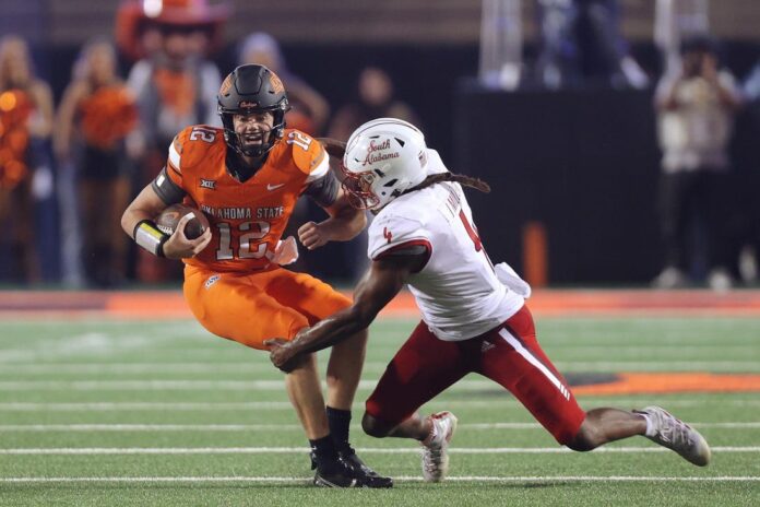 The Cowboys’ three-quarterback system, that was efficient in wins over Central Arkansas and Arizona State, was ineffective this time.