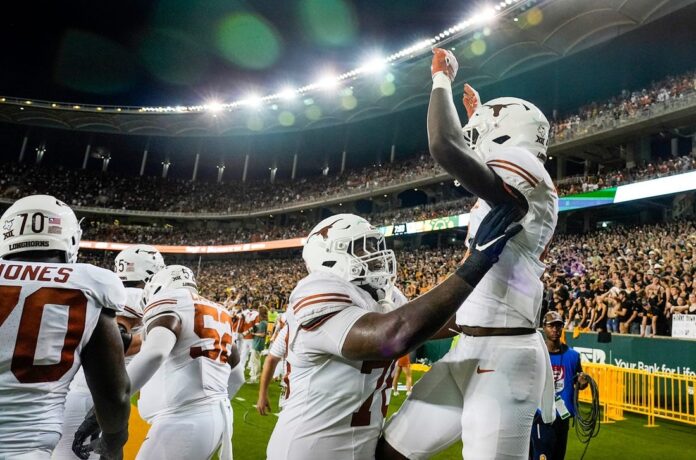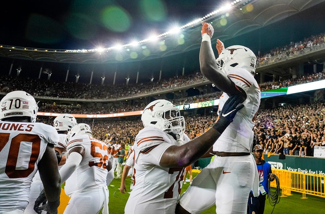 Texas heads home on the heels of a dominant 38-6 win at Baylor last Saturday in its league opener, with Quinn Ewers passing for 293 yards and a touchdown and running for 16 yards and another score. Jonathon Brooks rushed for 106 yards and two TDs on 18 carries in the win, and Ja’Tavion Sanders caught five passes for 110 yards for the Longhorns.