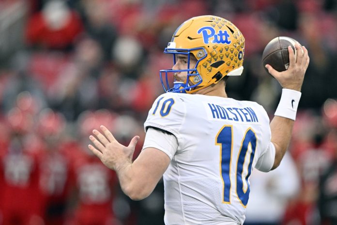 Pittsburgh quarterback Eli Holstein was carted off the field with 5:32 left in the first quarter with an apparent left ankle injury during Saturday’s Atlantic Coast Conference game against host Louisville.