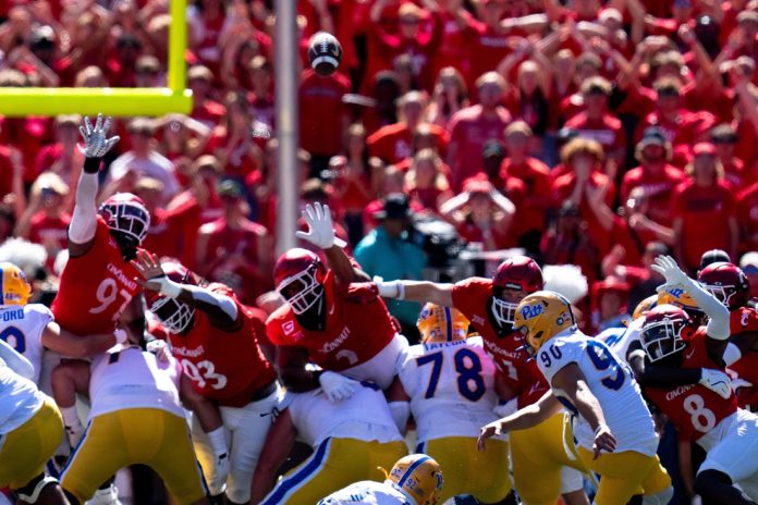 The Bearcats had a chance to seal the game with a defensive stop on third-and-4 from the Pittsburgh 26, but delay of game was called on defensive lineman Kam Wilson, giving the Panthers new life.
