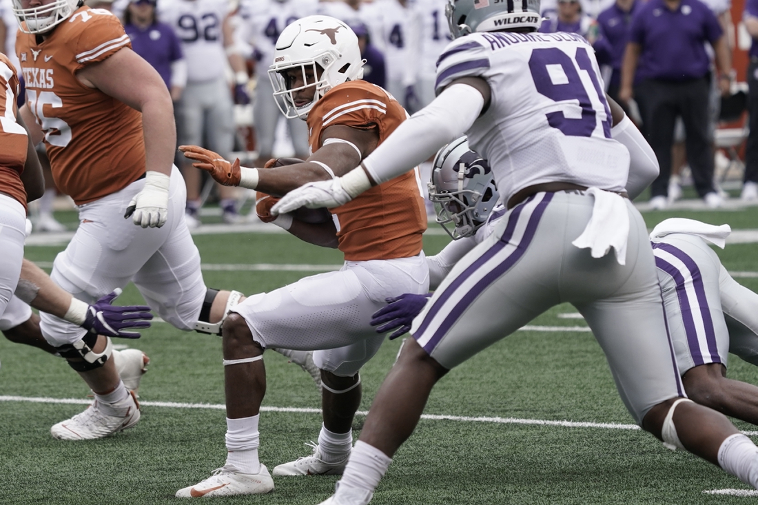 Texas went back on top with a 10-yard touchdown pass from Thompson to Cade Brewer with 13:07 to play in the second quarter but Cameron Dicker missed the PAT kick, leaving the score at 13-7. The Wildcats responded with Howard’s 71-yard keeper for a TD and a 14-13 Kansas State lead.