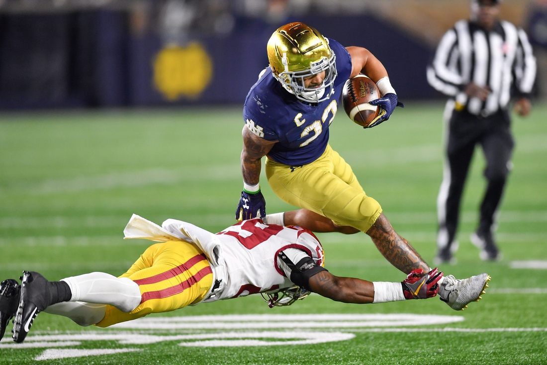 In Saturday’s 44-34 win over North Carolina, Notre Dame had 293 yards on the ground, with rushing touchdowns from three different players, buoyed by Kyren Williams’ 91-yard touchdown dash in the fourth quarter.