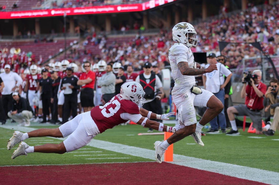 The Cardinal answered with a 51-yard touchdown pass from Daniels to Elic Ayomanor, extending the lead to 14-3 with 13:07 left in the first half.