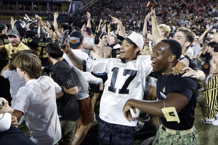 One of the more memorable field stormings occurred last October, when Vanderbilt shocked then-No. 1 Alabama in Nashville, with fans tearing down the goal posts and carrying them to the Cumberland River. That cost Vanderbilt $100,000, which went to Alabama. The Crimson Tide also received $100,000 apiece from Tennessee and Oklahoma after both host programs upset Alabama last season.