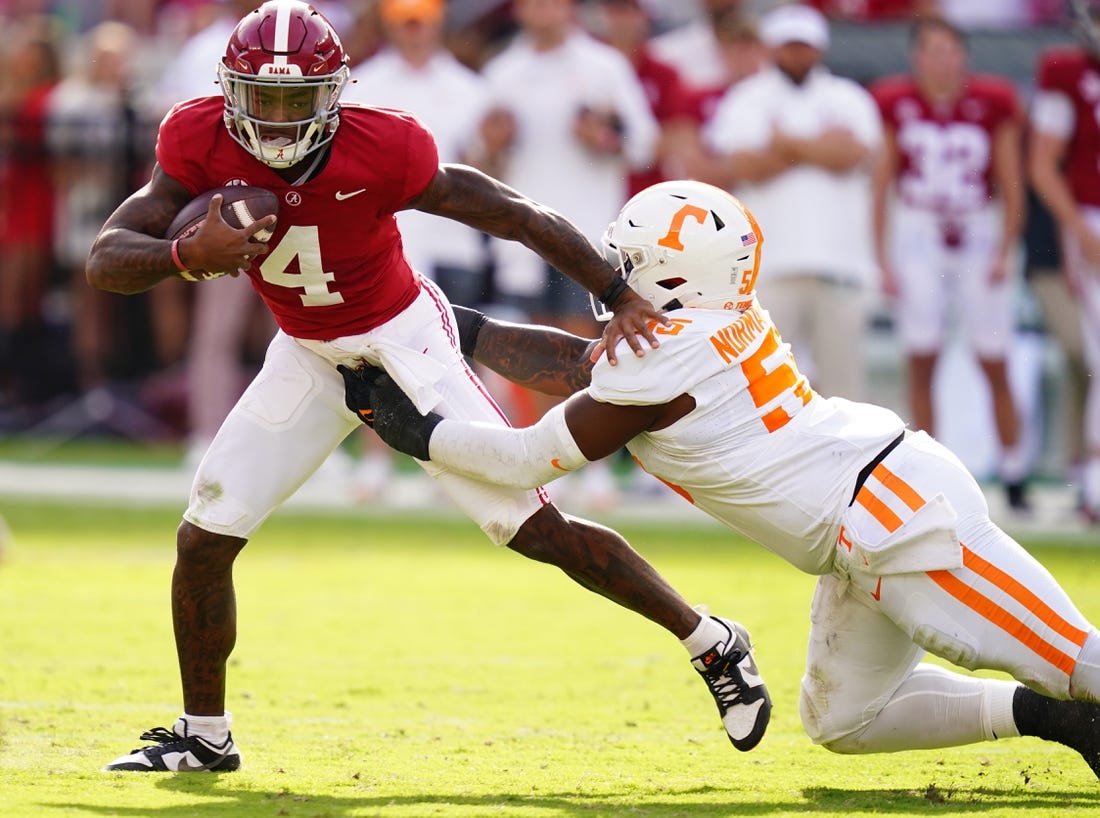 Milroe completed 14 of 21 passes for 220 yards and an interception. The Crimson Tide defense stopped Tennessee on three fourth-down opportunities.