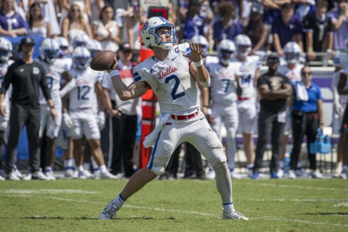 SMU standout quarterback Preston Stone broke the fibula in his left leg during Saturday’s victory over Navy, Mustangs coach Rhett Lashlee said Monday.