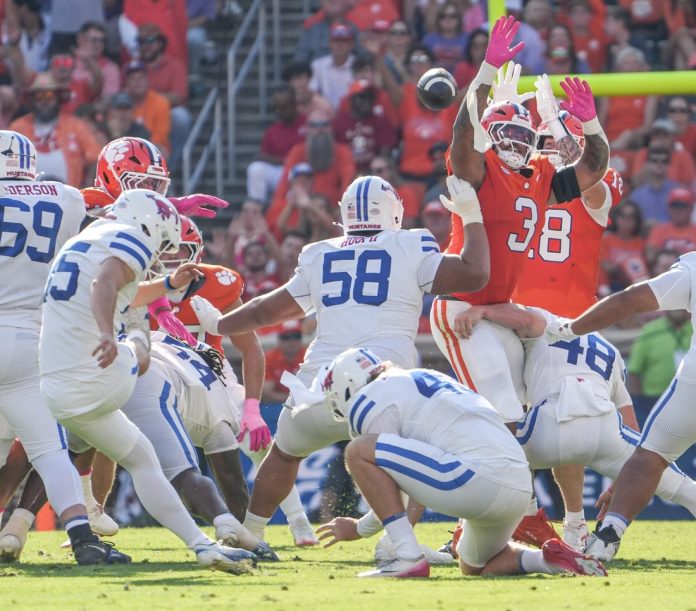 The Mustangs extended their lead to 23-14 on Derrick McFall’s 35-yard TD run with 7:29 left in the third quarter, but Clemson was within six points, 23-17, after Hauser made a 28-yard field goal with seven seconds remaining in the third.