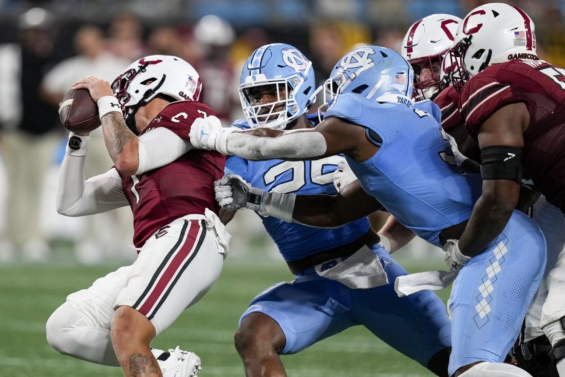 The main concern for the Gamecocks (0-1) after experiencing the rush of then-No. 17 North Carolina is the offensive line. South Carolina allowed the Tar Heels to sack quarterback Spencer Rattler nine times, which was the most any FBS team allowed last weekend. The Gamecocks also failed to get a push in the run game, finishing with a net total of minus-2 rushing yards.