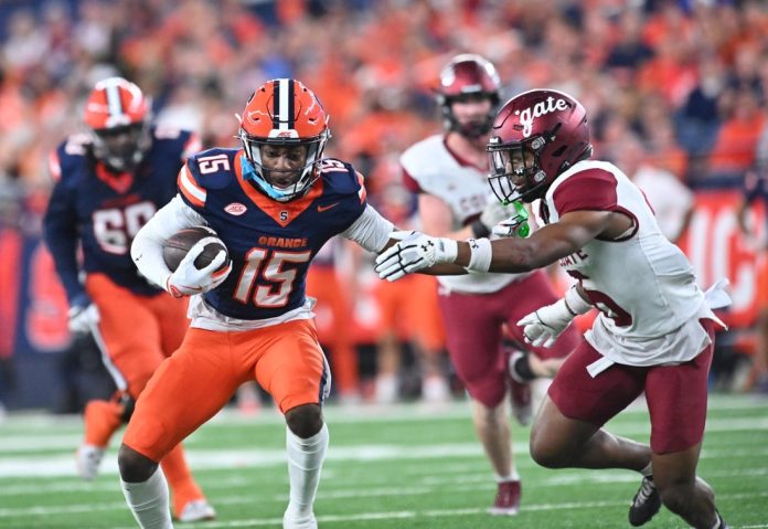 Following last week’s overtime win against UConn, Orange coach Fran Brown made his team run postgame sprints on the field as a sign of his displeasure with his players’ effort during the contest. Syracuse (2-1) put forth a much crisper effort in this one, scoring 38 first-half points and finishing with 620 yards of total offense.