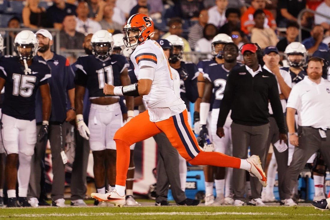 The Orange’s defense set up Syracuse’s next score. After Marlowe Wax strip-sacked Zion Turner and recovered the fumble at UConn’s 30, Tucker scored on a two-yard run six plays later to push the lead to 34-7 with 9:30 left in the third quarter.