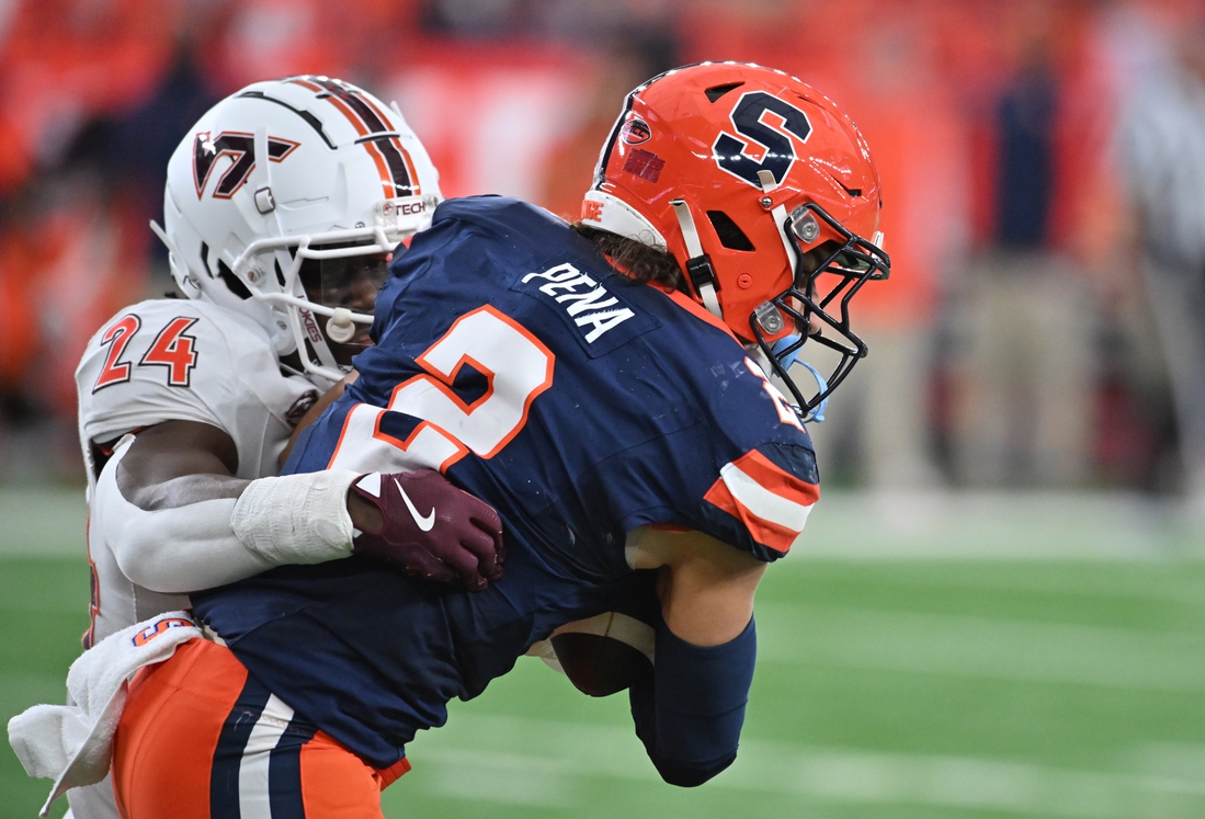 However, the Orange continued to fight, as McCord hooked up with Ross-Simmons for a 55-yard scoring strike less than two minutes later. After a Hokies punt, McCord found Trebor Pena for 41 yards to set up Allen’s 1-yard TD run.