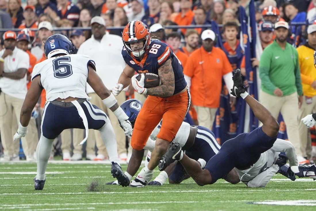 Syracuse’s momentum did not last long, however, as UConn found the end zone 2 1/2 minutes later. Brown took a handoff around the left edge on third-and-1 and sprinted up the sideline for a 45-yard touchdown.