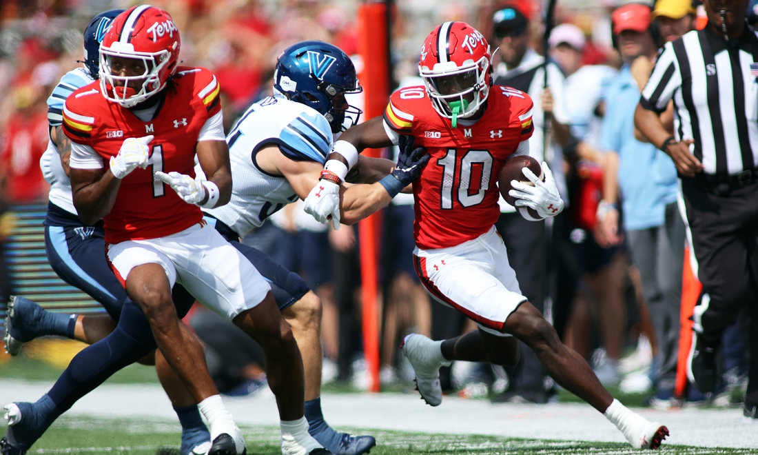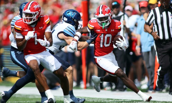 Kaden Prather had six receptions for 57 yards and a touchdown. Nolan Ray and backup quarterback MJ Morris added touchdown runs for Maryland.
