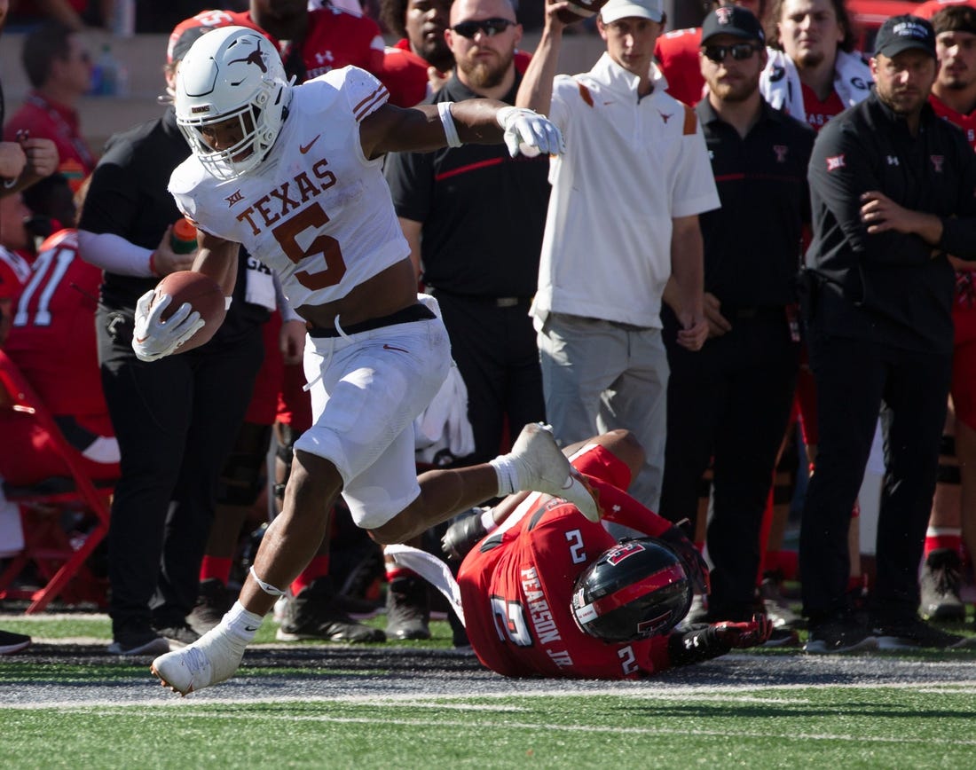 Preseason All-American running back Bijan Robinson fumbled on Texas’ first play of overtime, setting the table for the Red Raiders to win with a field goal on its possession. Robinson had 103 yards rushing on 16 carries in the loss and scored on runs of 8 and 40 yards. His 412 yards on the ground ranks 17th in the nation, while his seven rushing TDs are tied for third.