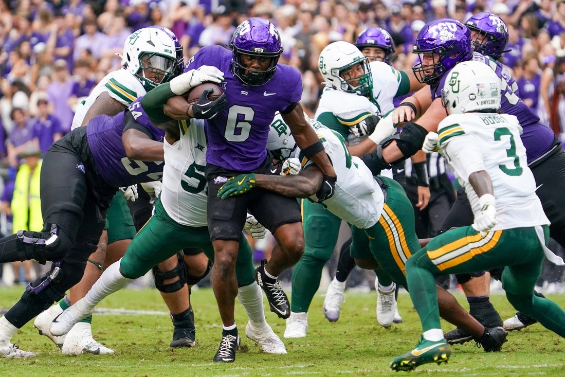 TCU (5-2, 2-2 Big 12) survived three lightning delays in the fourth quarter and a late Baylor surge to get back on track in the conference race. Hoover hit on 22 of his 31 throws, and the Horned Frogs’ defense intercepted Baylor quarterback Sawyer Robertson (who led FBS in passing yards entering Saturday) three times to counteract his 318 passing yards.