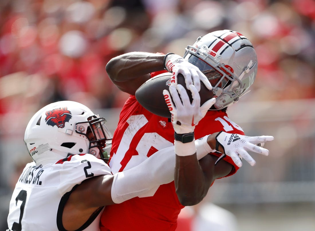 Marvin Harrison Jr. stepped up against Arkansas State by catching three of the four touchdown passes thrown by C.J. Stroud.