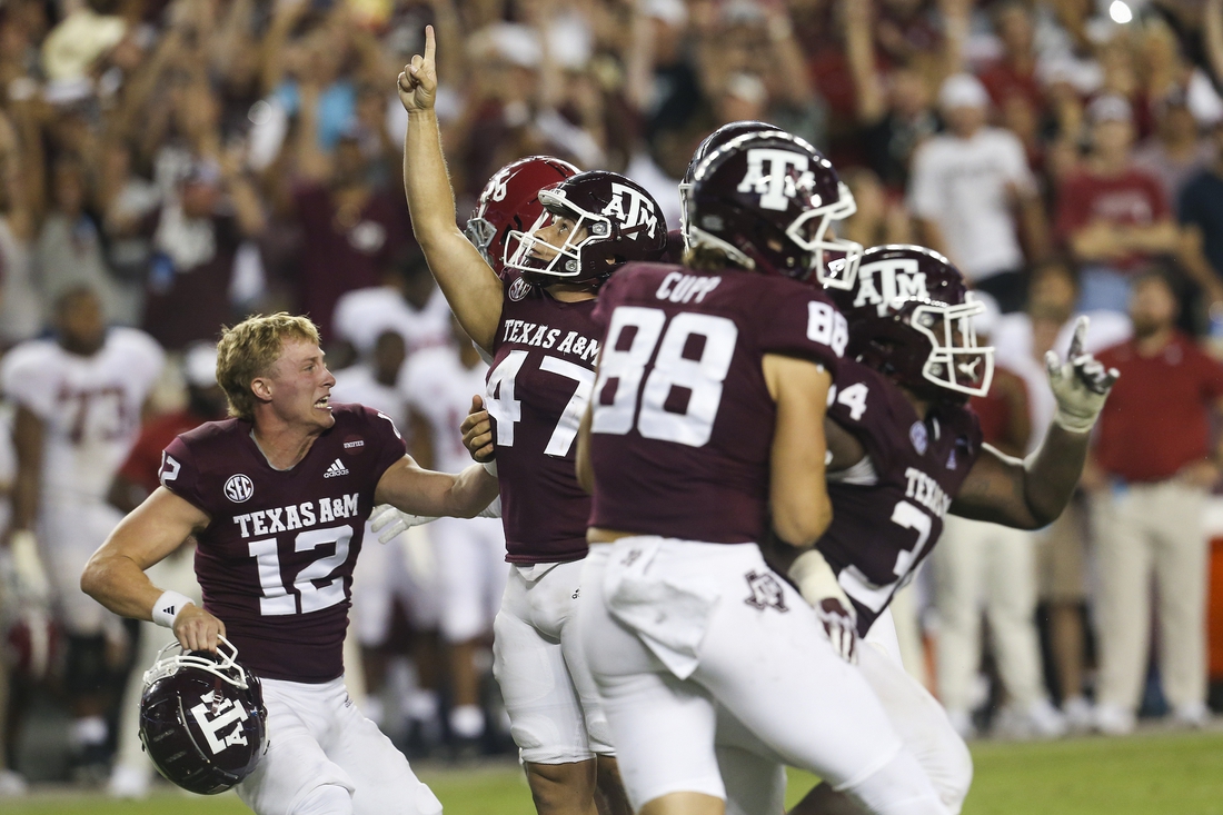 Freshman quarterback Zach Calzada completed 21-of-31 passes for 285 yards and three touchdowns with one interception, tying the game at 38 on a 25-yard scoring strike to Ainias Smith with three minutes left in the game.