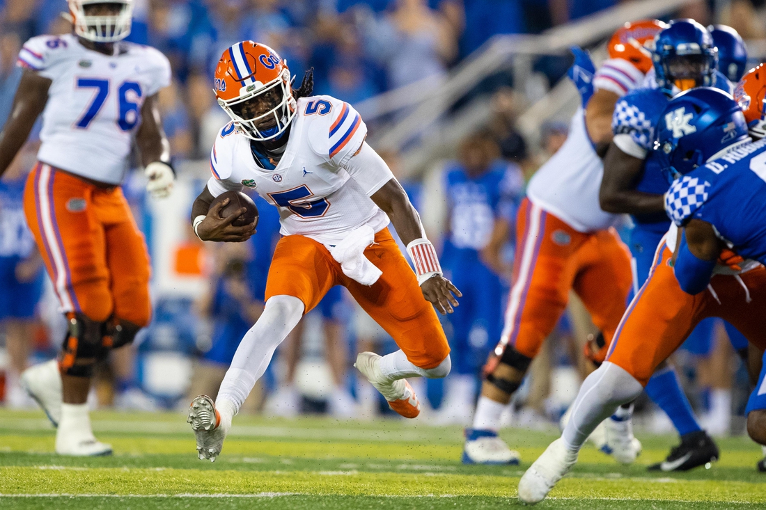 Jones leads the Gators with 439 rushing yards while passing for 871 yards and five touchdowns against six interceptions. He has completed 68.9 percent of his passes for a team averaging 31.4 points per game.
