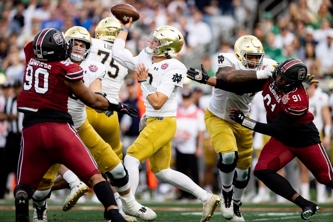 Notre Dame trailed 24-17 at the half, and eventually outscored South Carolina in each of the game’s final three quarters.