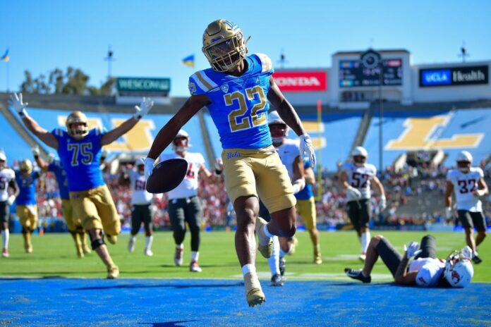 Ward underthrew his target near midfield and Alex Johnson snatched UCLA’s third takeaway of the first half, leading to a 37-yard field goal by RJ Lopez for a 9-3 lead with 1:30 remaining in the half.