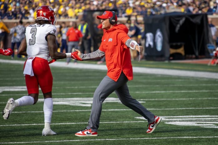 The Rebels then hit Swann from the backside, jarring the ball loose (and giving Swann an elbow contusion) for Jerrae Williams to scoop and scamper 41 yards to tie it.