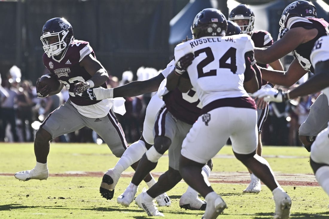 Mississippi State countered with Dillon Johnson’s touchdown run on fourth-and-goal from the 1-yard line for a 28-10 lead with 12:42 left in the game.