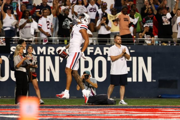 McMillan, a preseason first-team AP All-American, scored on a 69-yard reception on Arizona’s third snap of the game and never stopped. He added scoring receptions of 17, 78 and 40 yards, in addition to a 31-yard gain in which he was pulled down at the 1.