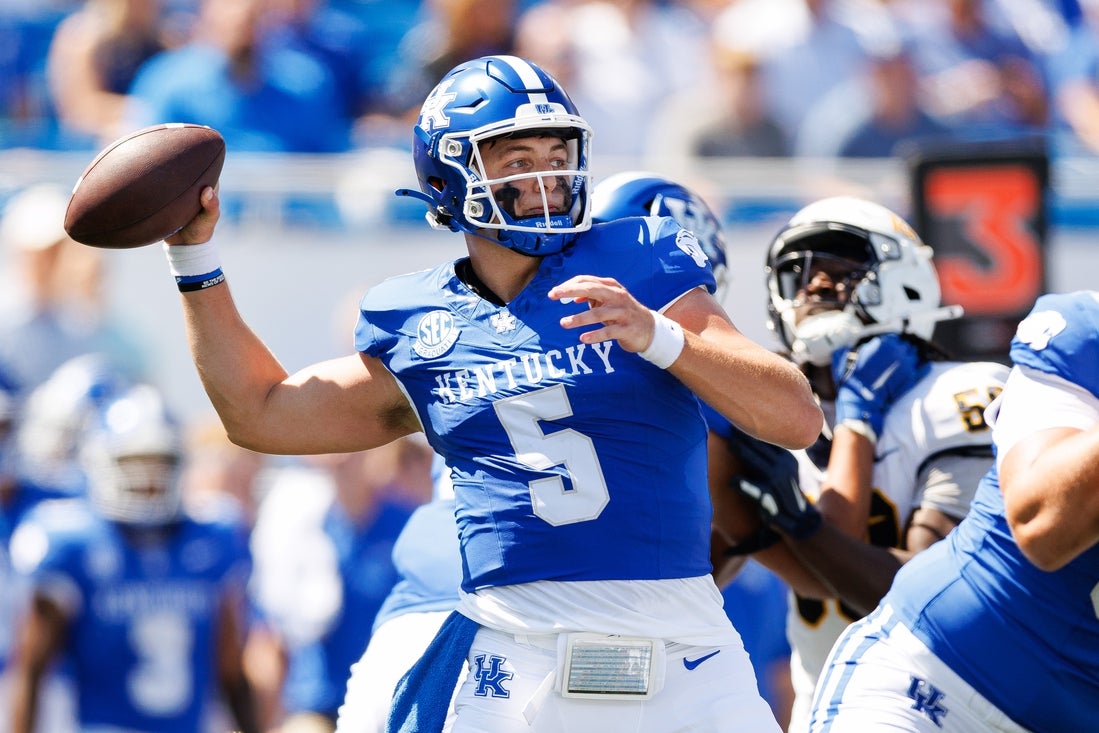 Calzada completed 10 of 23 passes for 85 yards and often had trouble completing deep passes before Kentucky shifted to a heavier running attack in the second half.