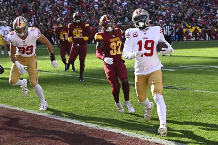 Brandon Aiyuk had seven catches for 114 yards and a touchdown and Charvarius Ward and Deommodore Lenoir added key interceptions in the fourth quarter for the 49ers, who outgained the Commanders 408-225.
