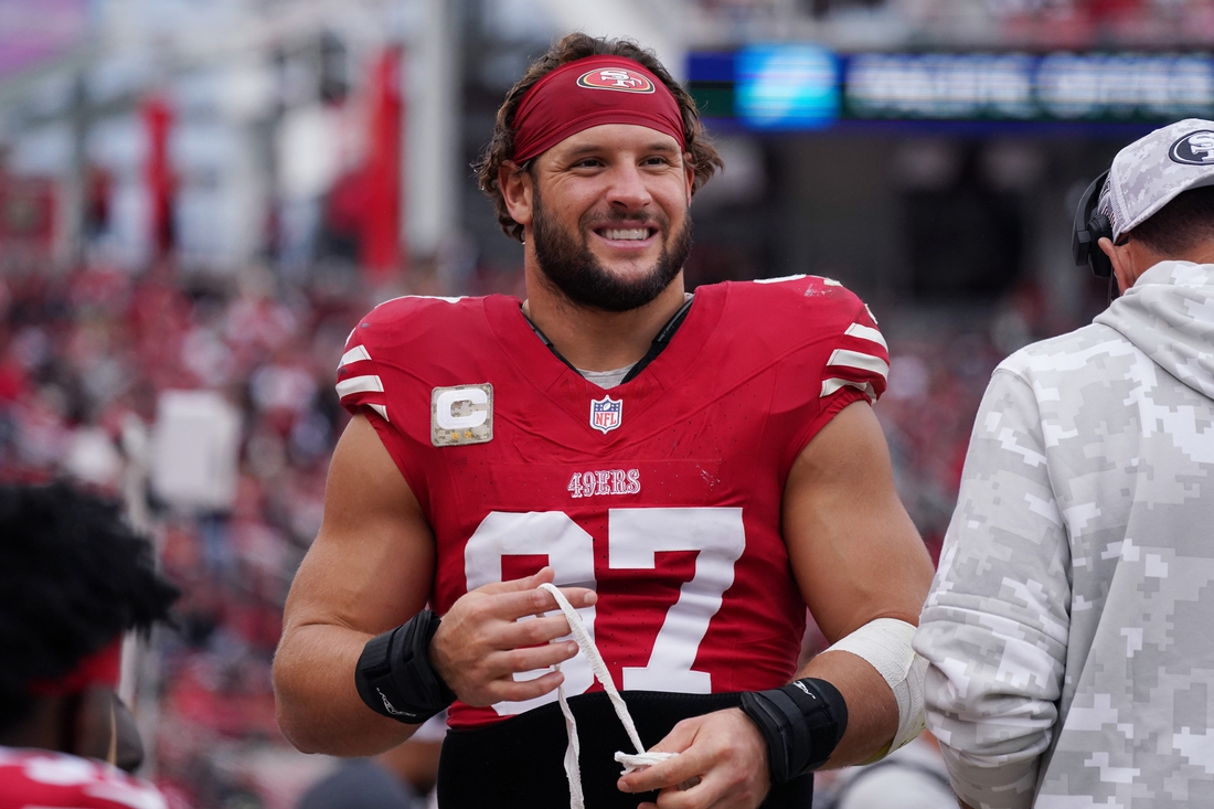 San Francisco 49ers star defensive end Nick Bosa will miss his third straight game after being downgraded to out for Sunday’s contest against the Chicago Bears.