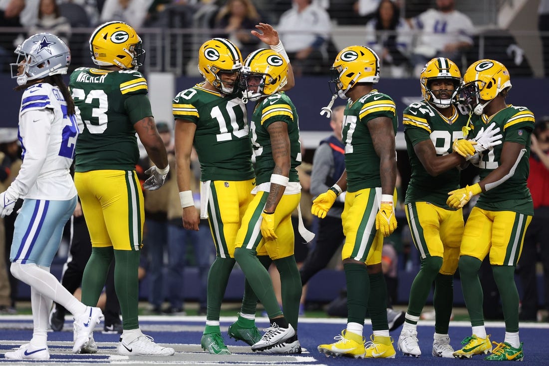 Aaron Jones rushed for 118 yards and three touchdowns and the Green Bay Packers stormed to a 48-32 win over the Dallas Cowboys in an NFC wild-card playoff game on Sunday afternoon in Arlington, Texas.