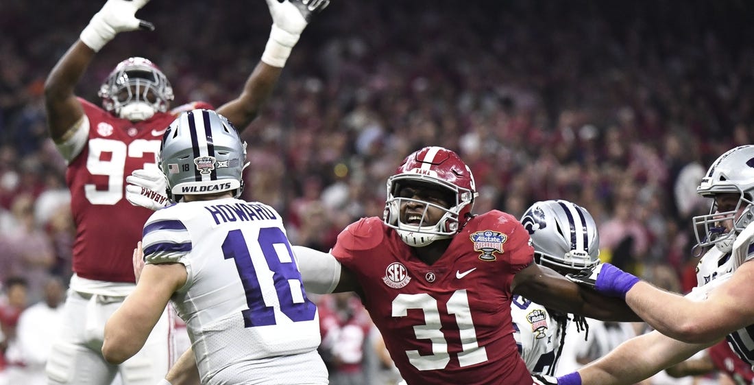 Anderson played outside linebacker in the Alabama 3-4 defense and wasn’t asked to play with his hand in the dirt out of a three-point stance often. He’s been training at defensive end and outside linebacker, and said most teams classify him as an “edge” player with the versatility to rush the passer at either position.
