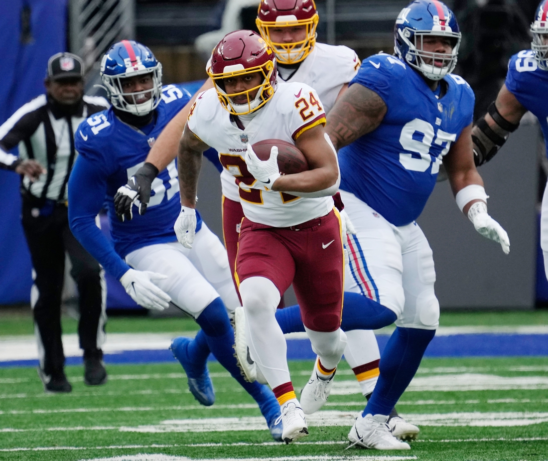Gibson averaged nearly 7.0 yards on his 21 carries as he became Washington’s first 1,000-yard rusher since Adrian Peterson in 2018. Gibson’s 21 touchdowns in his first two seasons are a franchise record, as he topped Albert Morris’ mark of 20.