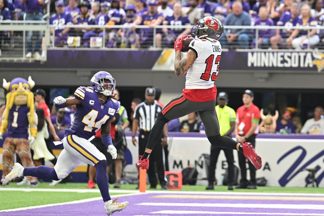 Tampa Bay pulled even at 10-10 with 1:09 to go before halftime. Evans sneaked behind the Vikings’ secondary, and Mayfield found him with a pass over the middle for a 28-yard touchdown.