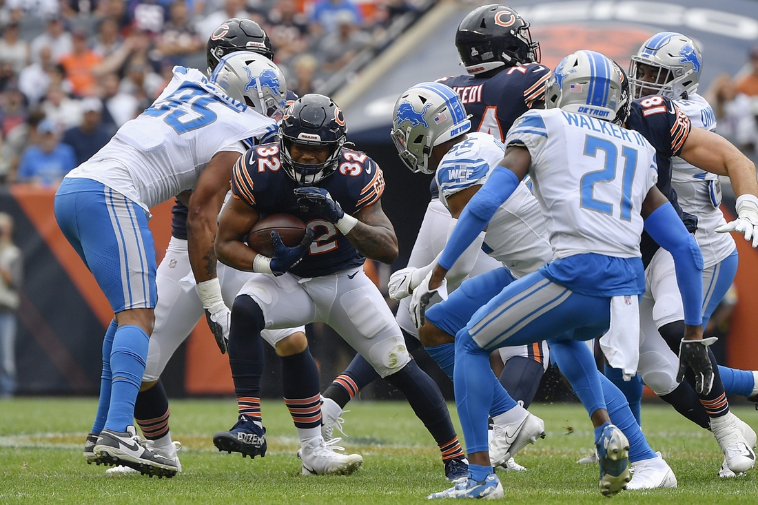Chicago Bears running back David Montgomery exited Sunday’s game against the Detroit Lions in the fourth quarter due to a left knee injury.