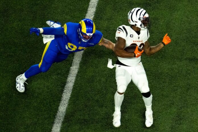 Joe Burrow played through a right calf strain to complete 26 of 49 passes for 259 yards while Ja’Marr Chase had 12 catches for 141 yards to lead the Cincinnati Bengals past the visiting Los Angeles Rams, 19-16, on Monday night.