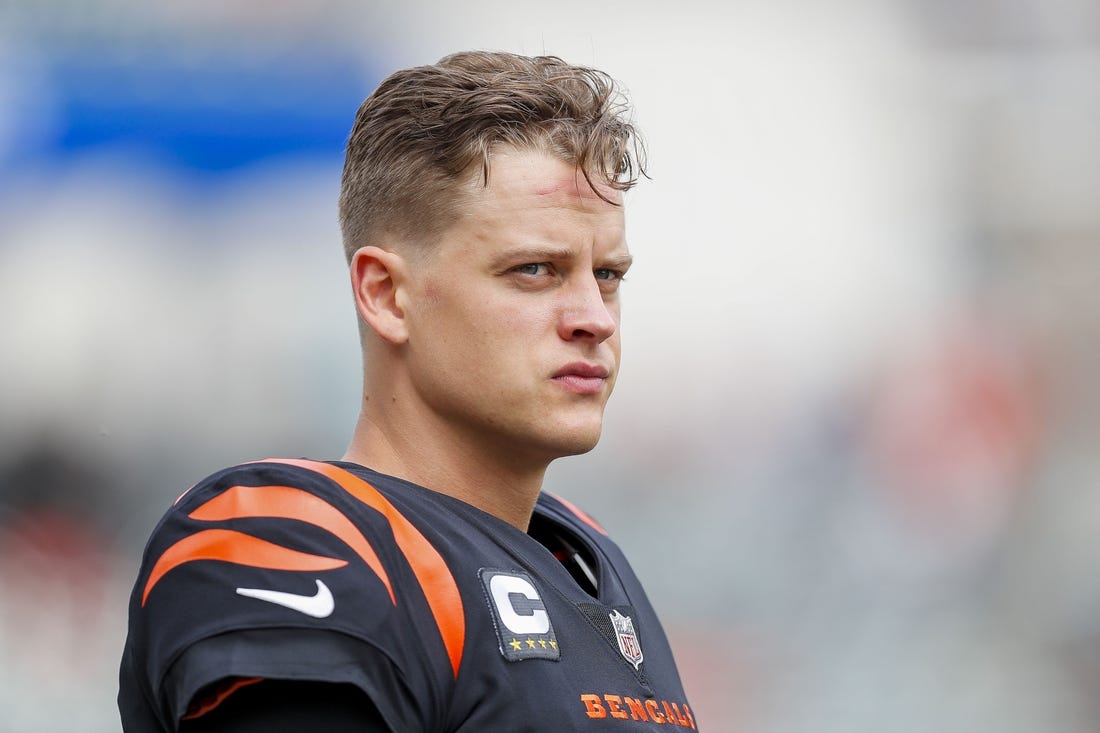 Bengals quarterback Joe Burrow remains day-to-day with a right calf injury, coach Zac Taylor said Thursday.