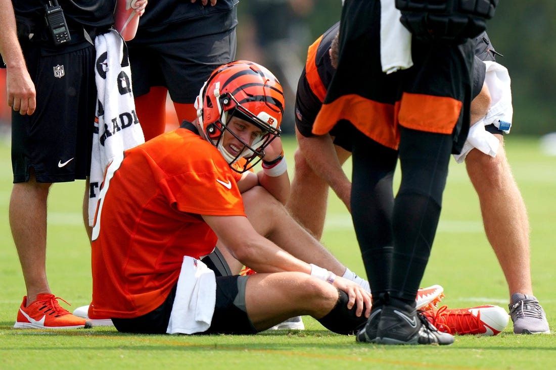 During a live drill, Burrow used a pump fake, tucked the ball and started to run before coming up limping. He was already wearing a sleeve on the calf because he experienced soreness in that part of his leg after the first day of training camp.