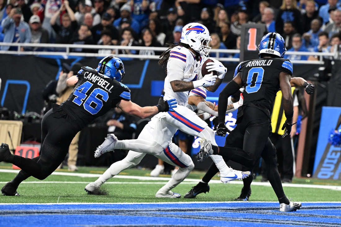 Tyler Bass kicked a 50-yard field goal in the first minute of the fourth quarter to make it 38-21. Goff’s 12-yard TD pass to Jahmyr Gibbs with 12 minutes left cut Buffalo’s lead to 10.