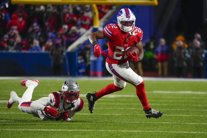 James Cook is expected to see the bulk of the work out of the backfield for the Bills. Fellow running back Ty Johnson often will enter the game in passing situations.