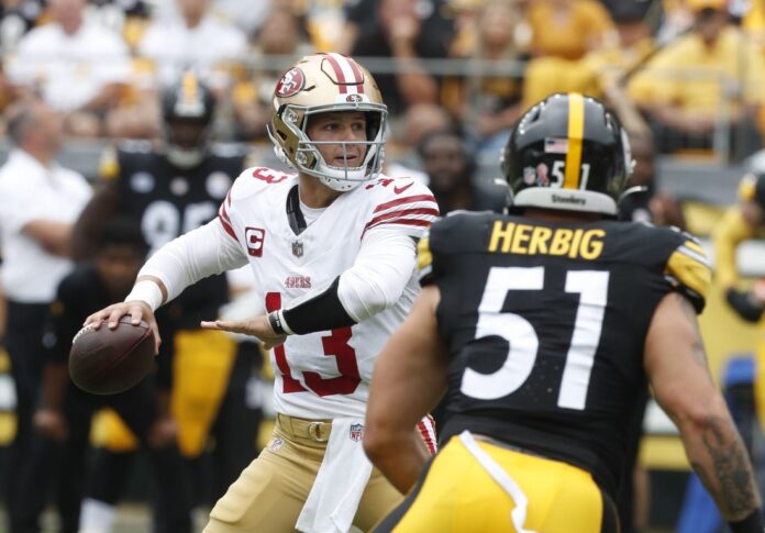 Brock Purdy threw two touchdown passes to Brandon Aiyuk, Christian McCaffrey scored on a long run and the San Francisco 49ers rolled to a 30-7 victory over the host Pittsburgh Steelers on Sunday in the season opener for both teams.