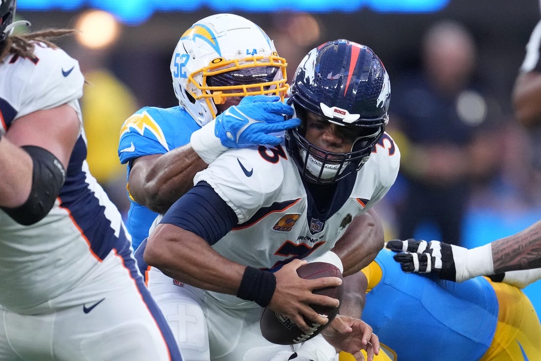 Broncos quarterback Russell Wilson injured his hamstring in the fourth quarter of Denver’s overtime loss to the Los Angeles Chargers on Monday night.