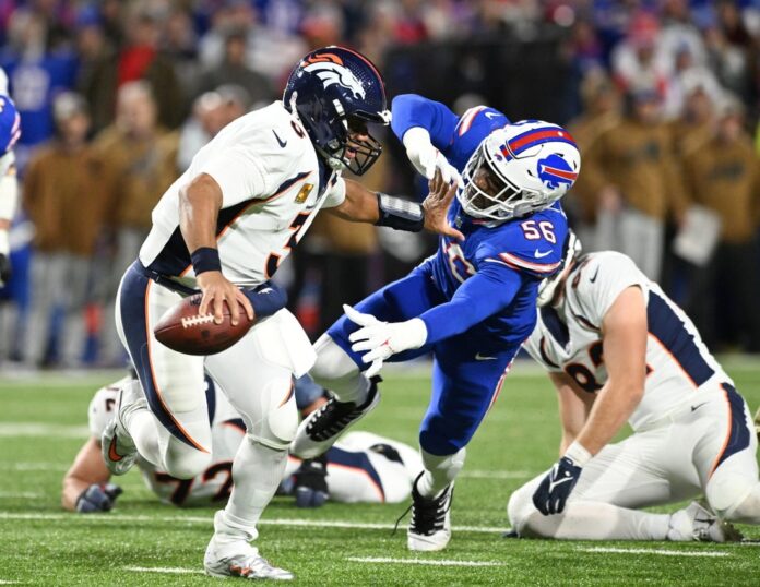 After Wilson took knees to position the ball on the right hashmark for Lutz, the kicker pushed a 41-yard attempt wide right with four seconds left. However, the Bills were penalized for having 12 men on the field. Lutz’s next kick sailed right down the middle to up Denver’s record to 4-5.