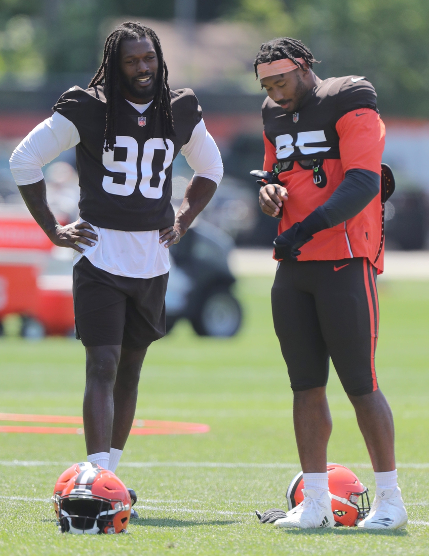 Cleveland’s extensive injury report improved a bit Thursday as Myles Garrett and Jadeveon Clowney returned to practice, but the Browns were still without their backfield.