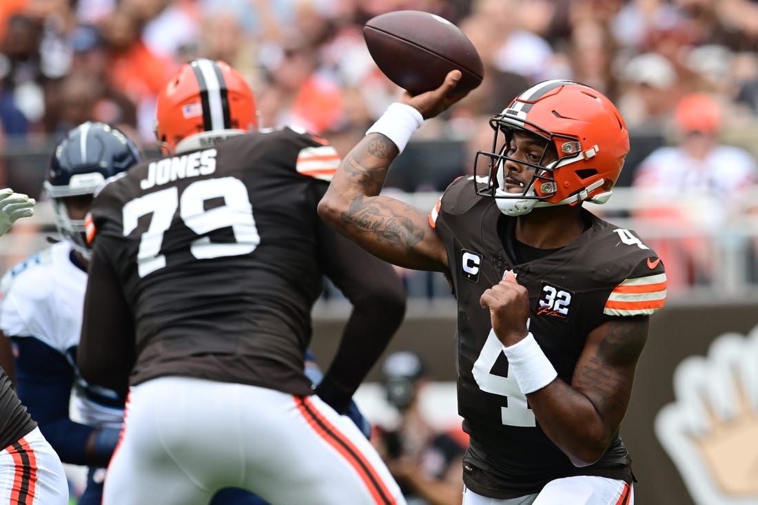 Deshaun Watson went 27-of-33 passing for 289 yards and two touchdowns to lead the Cleveland Browns to a 27-3 home win over the Tennessee Titans on Sunday.