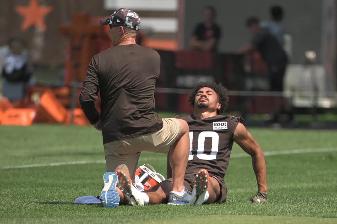 Cleveland Browns wide receiver Anthony Schwartz exited Thursday’s practice with a left knee injury.